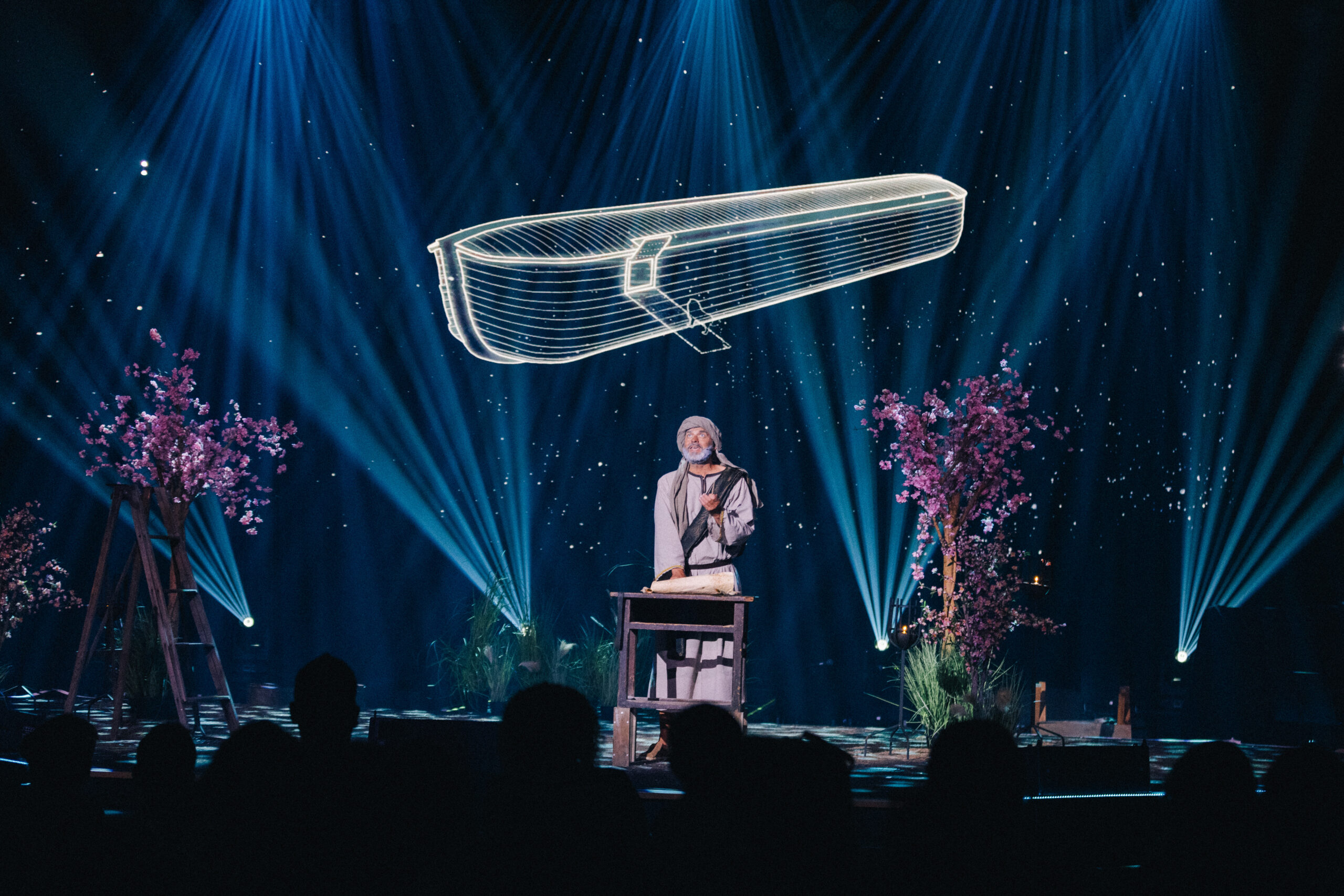 En ese conmovedor musical, nos transportamos a una época en la que el mundo se había vuelto malvado y los seres humanos se habían alejado de Dios. En medio del caos, Dios llama a un hombre justo para que lleve a cabo una tarea increíble y, en apariencia, imposible: construir una enorme embarcación, un arca, que salvará a su familia y a todos los animales de un diluvio que se avecina. A pesar de las pruebas, las burlas y las circunstancias adversas, Noé se mantiene fiel a la palabra de Dios y se convierte en un ejemplo de obediencia, perseverancia y confianza en las promesas de Dios.